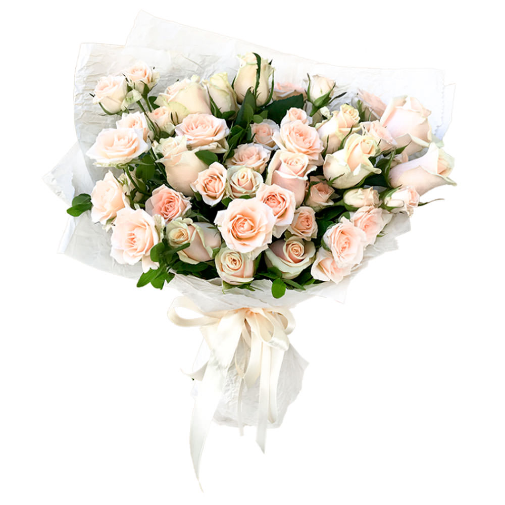 - 🌷 Кустовые розы (кремовая, розовая), одноголовая роза. Упаковка (лента, плёнка, пленка матовая)
