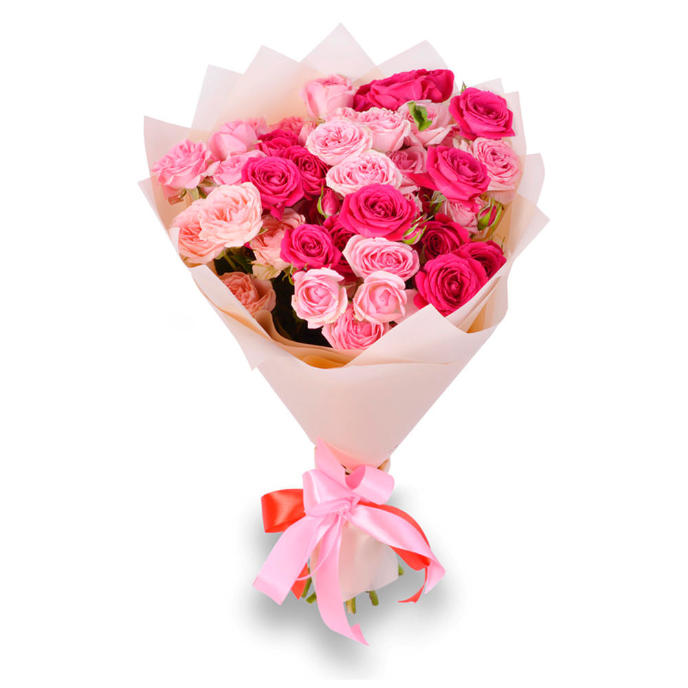 🌷 Кустовая роза микс (розовая, нежно-розовая). Упаковка (лента, плёнка, пленка матовая)